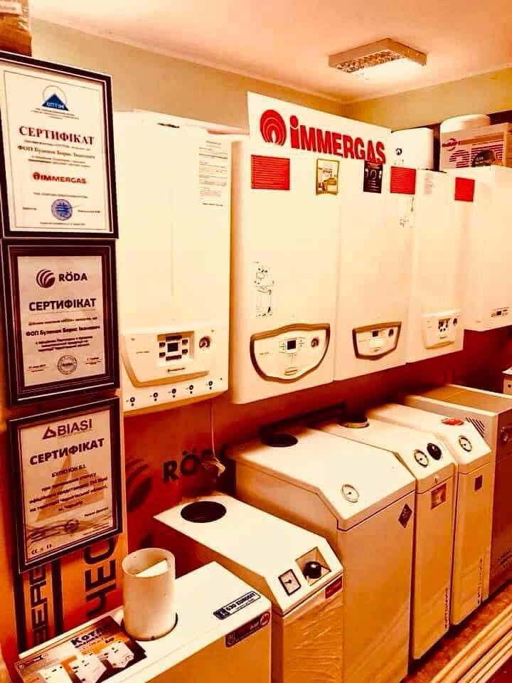 - котли, колонки, конвектори, бойлери, радіатори, автоматику, кондиціонери;