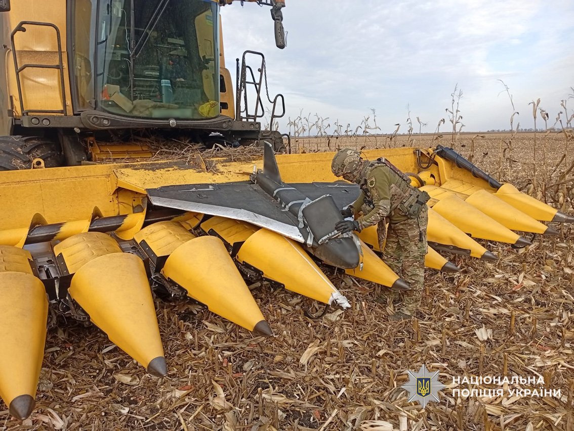 «Вночі під час збору врожаю у жатку комбайна потрапив збитий ворожий безпілотник. На щастя, ніхто не постраждав. Аграрії одразу ж відійшли на безпечну відстань і набрали «102», – розповідає вибухотехнік поліції Чернігівщини Олександр Жагловський.